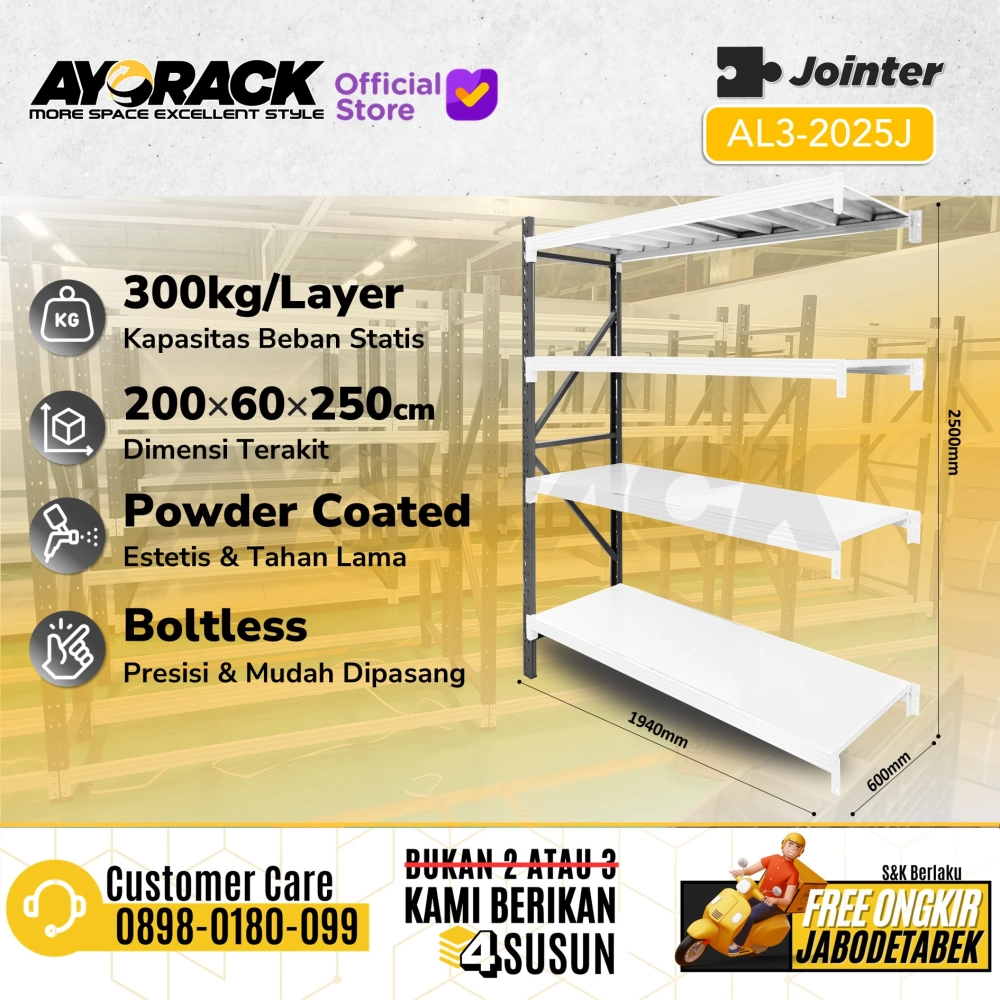 Rak Gudang Serbaguna AYORACK dirancang dengan material berkualitas untuk pemakaian kokoh dan jangka waktu lama. Cocok untuk keperluan rumah tangga, perkantoran, display, gudang dan bisnis Anda.