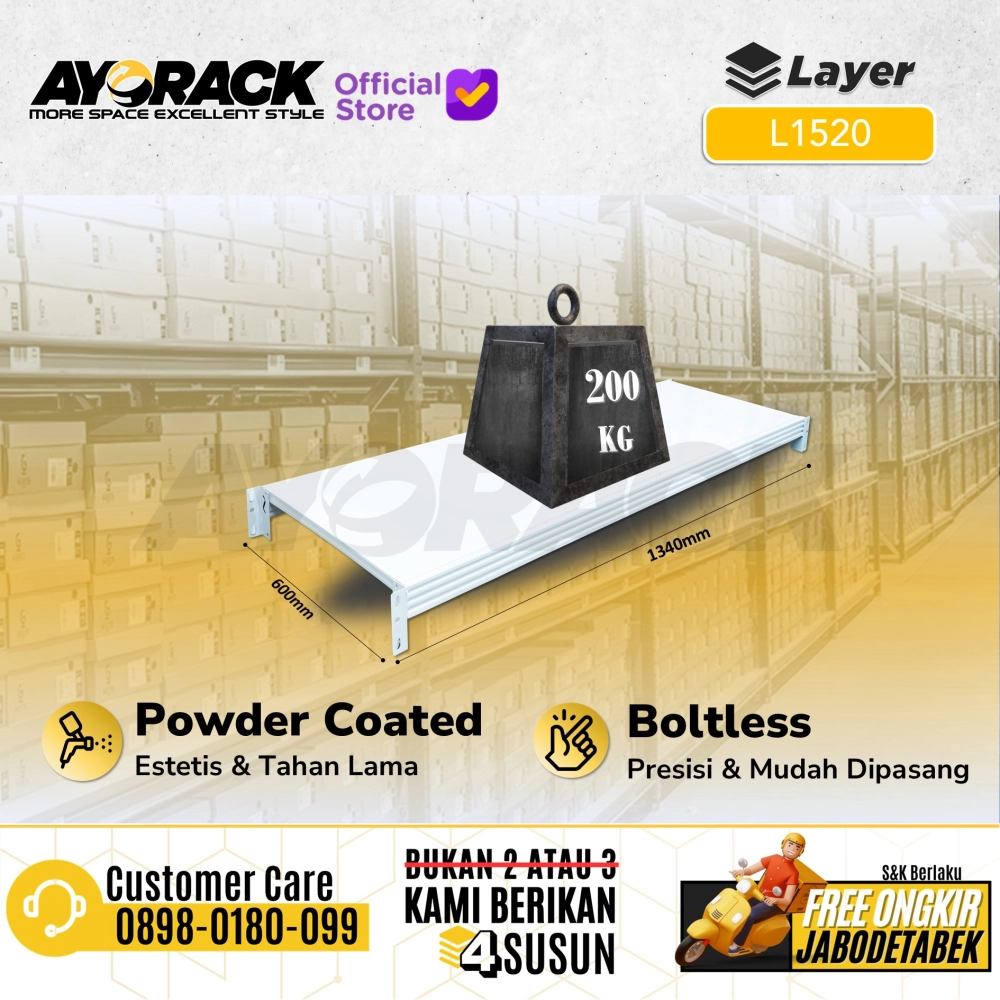 Tambahan Ambalan Rak Gudang Serbaguna AYORACK dirancang dengan material berkualitas untuk pemakaian kokoh dan jangka waktu lama.